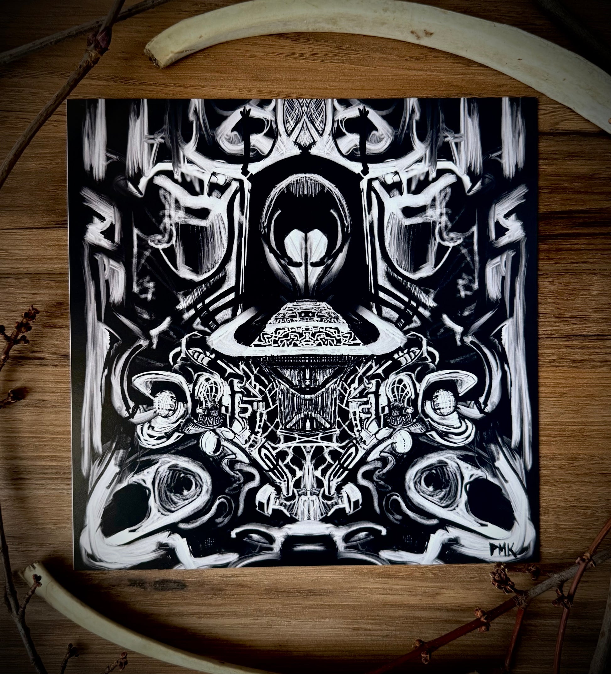 My original art printed on light cardstock and packaged in a protective sleeve with firm backing. Available in 8"x8" only.