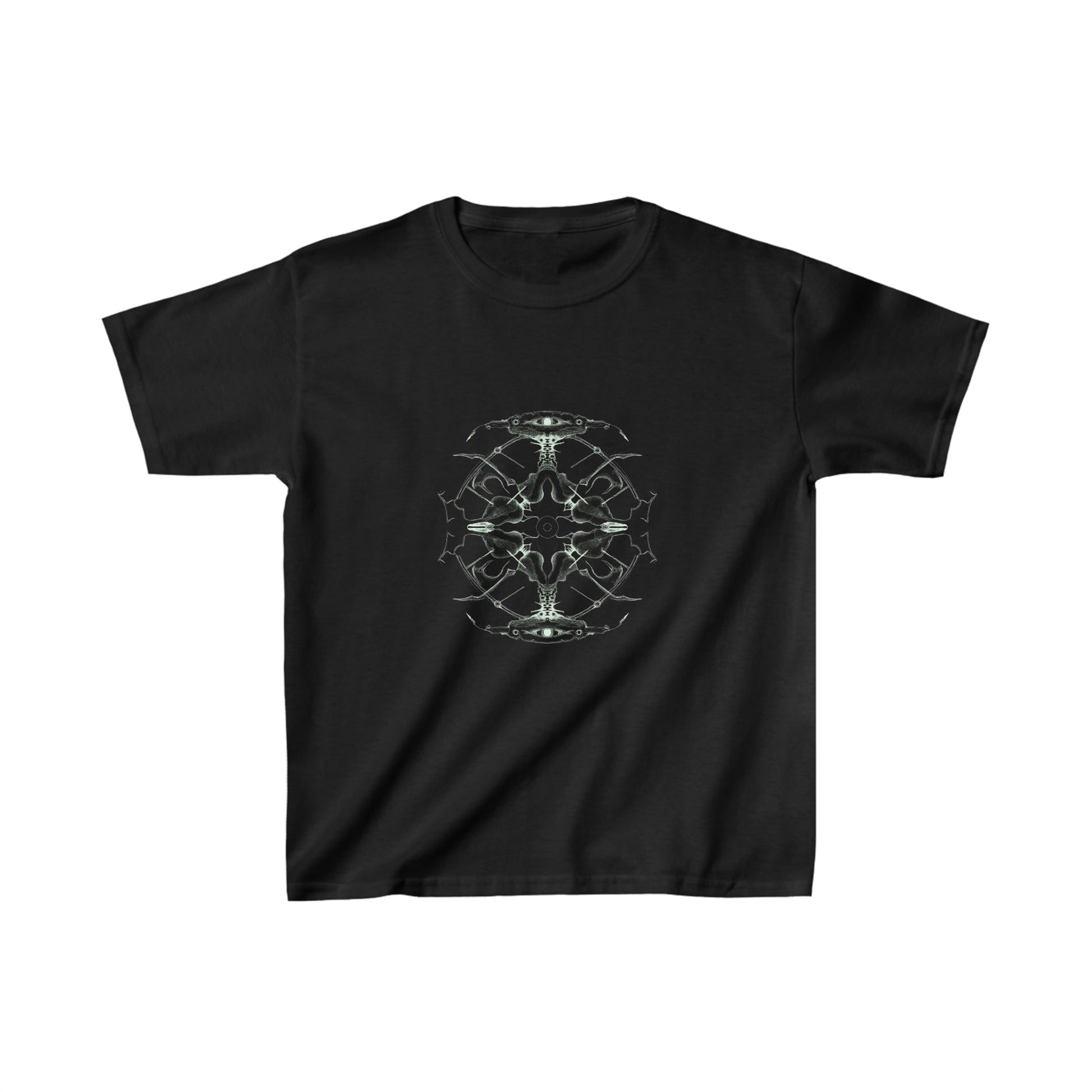 The kids heavy cotton tee is perfect for everyday use. The fabric is 100% cotton for solid colors. Polyester is included for heather-color variants. The shoulders have twill tape for improved durability. The collar is curl resistant due to ribbed knitting. There are no seams along the sides.